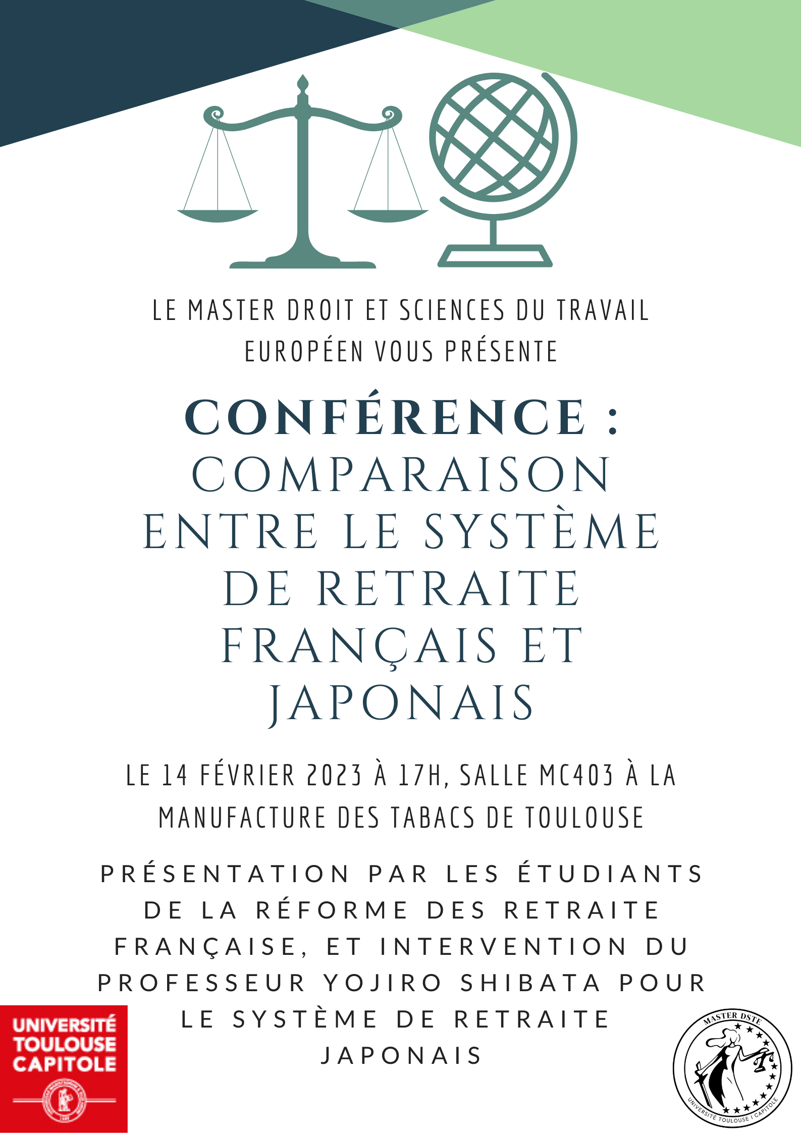 Présentation par les étudiants du Master Droit et Sciences du Travail Européen de la réforme des retraites française, et intervention du professeur japonais Yojiro SHIBATA sur le système de retraite nippon.